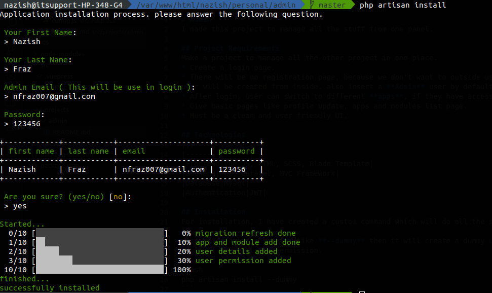If you are lazy like me, then you can pass extra parameter --dummy. It will automatically create a user with these details